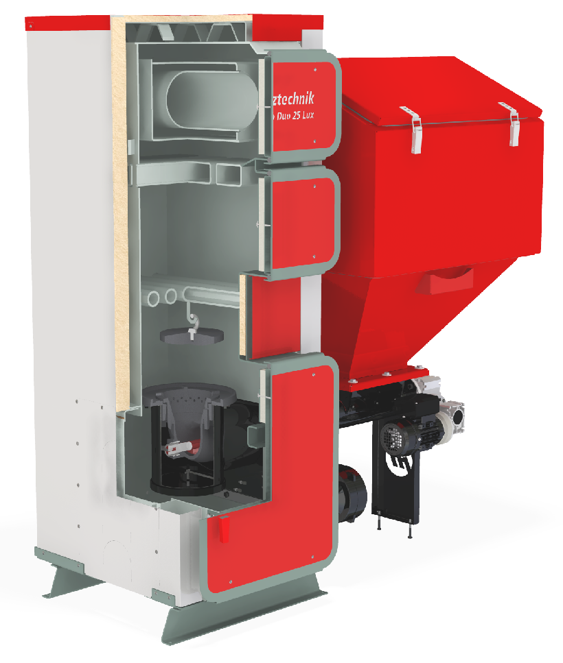 Для повышения качества вашего комфорта, под заказ можно исполнить: увеличенный бункер для загрузки топлива, автоматическую систему золоудаления, а так же шнек топлива с тыловой части котла.